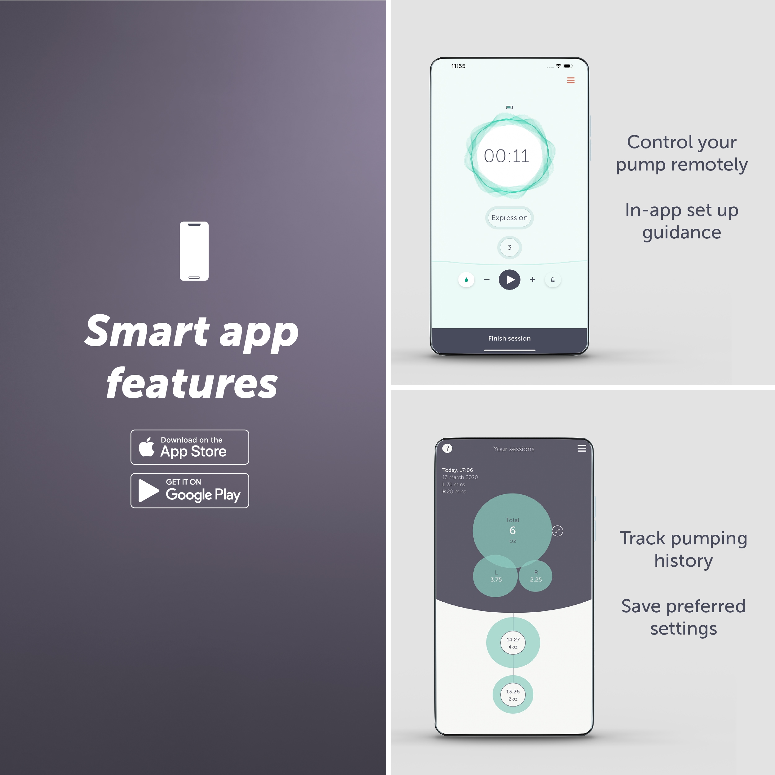 إلفي سترايد (فردية) - مضخة ثدي عالية الامتصاص، بتحكم بالتطبيق، بدرجة طبية - مضخة ثدي كهربائية مريحة بدون استخدام اليدين، مع وضعين وسعة 150 مل لكل عبوة