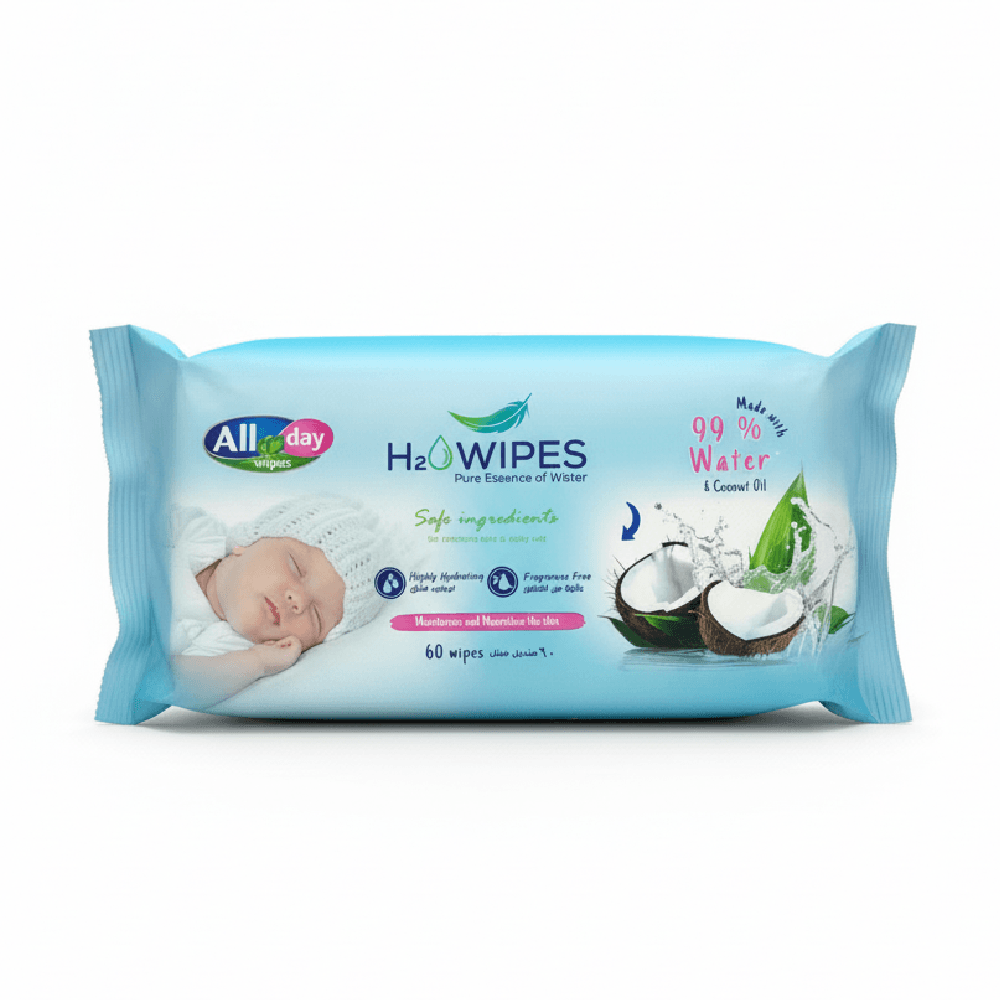 – H2O Wipes Contains 99% water and a touch of coconut oil – Immerse your Skin in the revitalizing power of water – Highly Hydrating – Fragrance Free”