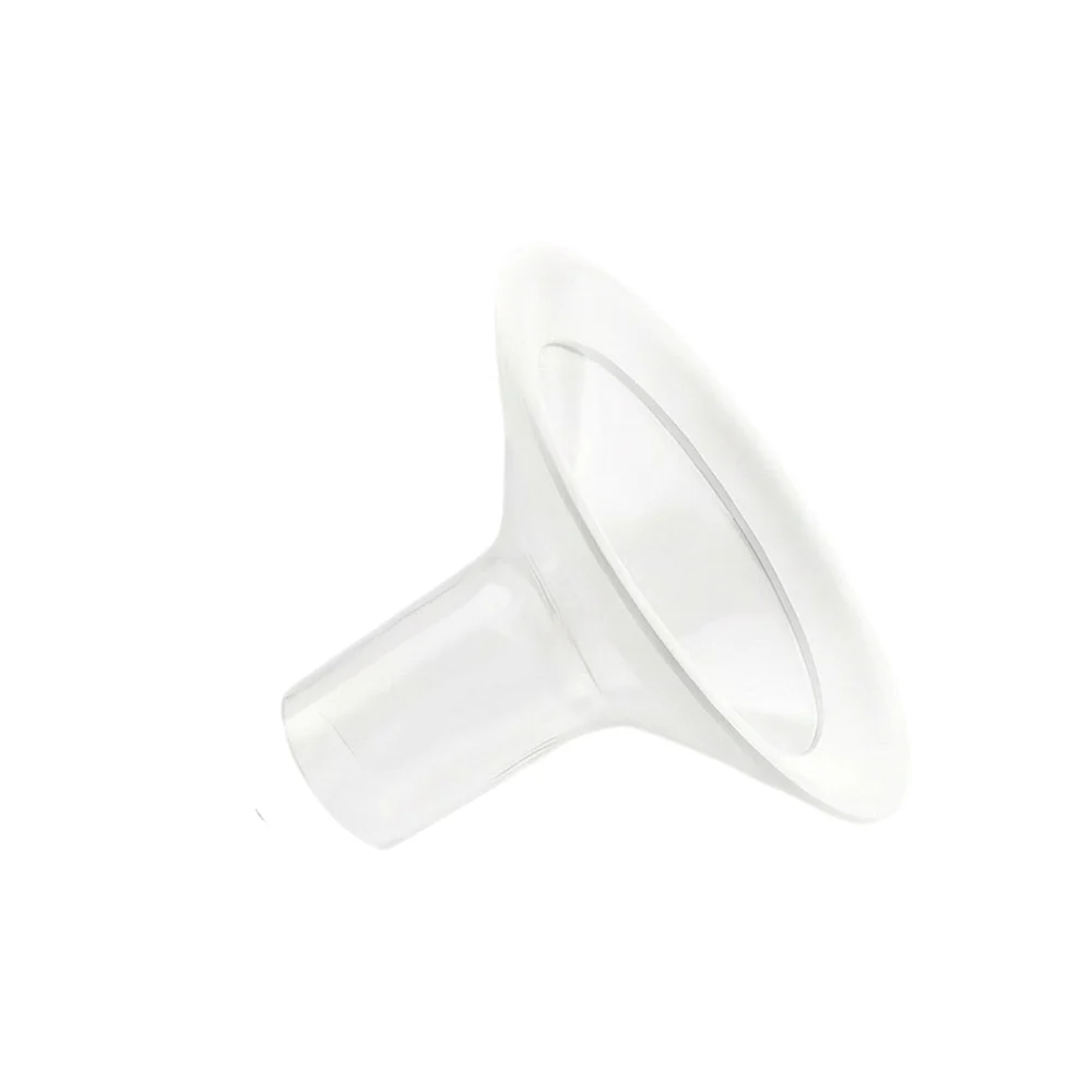 The flange commonly known as a breast shield, is a funnel-shaped plastic or silicone piece that fits directly over your nipple to form a seal around your areola. It creates a vacuum that gently draws your nipple into the funnel for milk removal, depending on the size of your nipple, you may need an insert for a better fit.