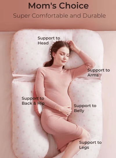 • The U-shaped pregnancy pillow boasts remarkable versatility, allowing effortless adjustment to various positions. It accommodates activities such as nursing, watching TV, reading, or targeting different areas of your body in need of support.