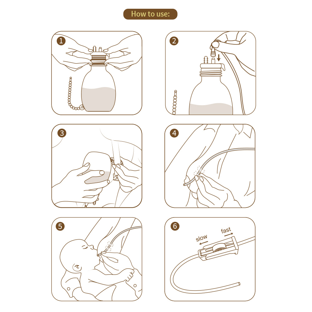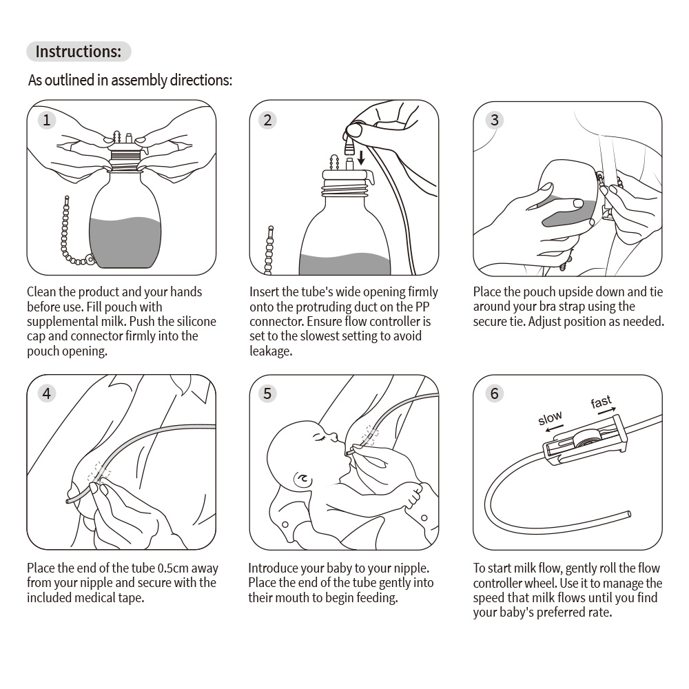 Connector & cap direct the milk smoothly into the tube while preventing leaks.